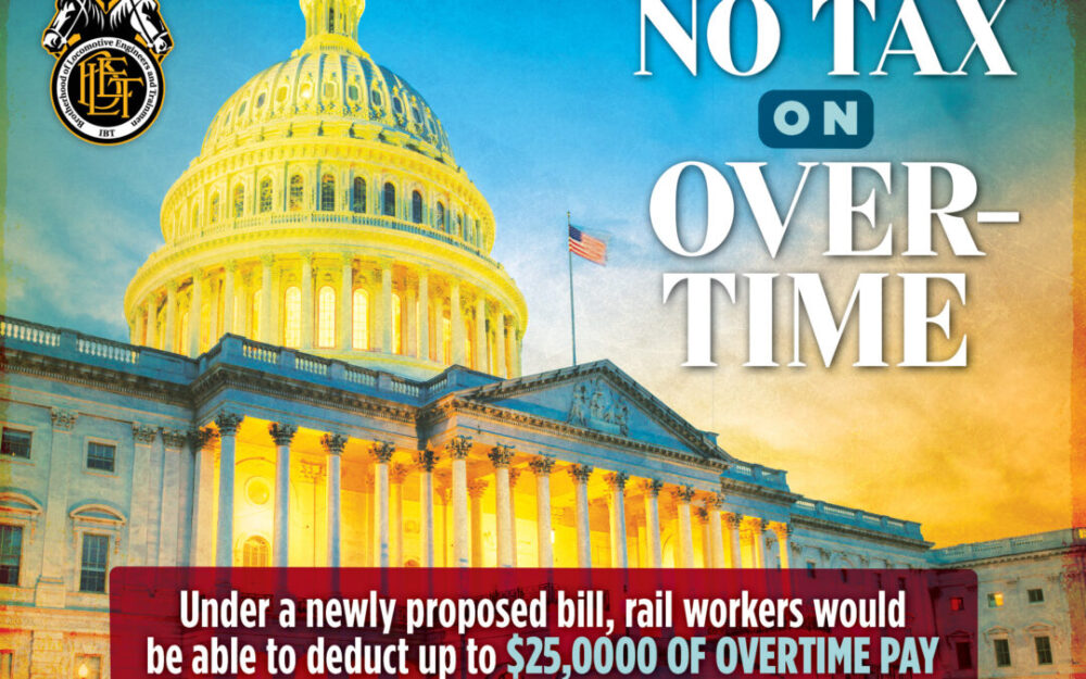 Legislation passed earlier this year granted tax exemptions on overtime pay to workers governed by the Fair Labor Standards Act. The new legislation expands on the previous bill and, if passed, would grant tax exemptions on overtime pay to BLET members and other workers governed by the Railway Labor Act. Under the proposed bill, rail workers would be able to deduct up to $25,000 of overtime pay from their annual income for tax purposes.